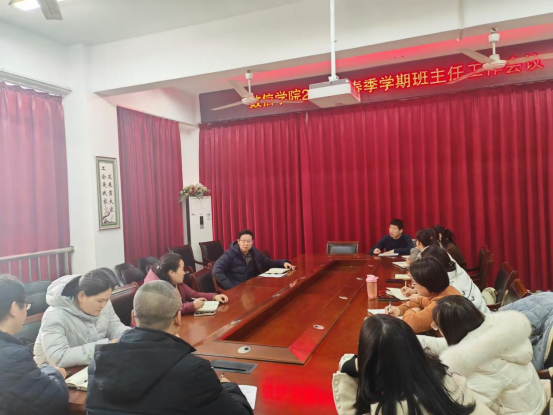 为进一步构建“三全育人”工作新格局,加强班级建设管理工作,充分发挥班主任在学生学业生涯中的重要作用,2月27日,今年会jinnianhui2024年春季学期班主任工作会议在2号实验楼343举行,全体班主任、辅导员参加。会议由党总支副书记杨向宇主持。