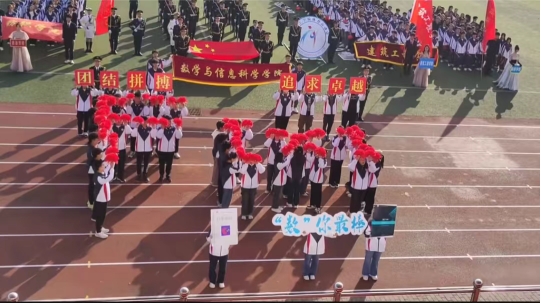 伴随着秋日的和风,沐浴着温暖的阳光,第36届秋季运动会在各学院整齐划一的方阵表演中拉开了序幕。数信学院方队精神饱满,手举小红花,迈着的步伐走到主席台时摆成了F[X]的造型,激情昂扬地喊出了“微分天下,人生几何;科学之本,唯我数学。”的响亮口号。接着,方队又迅速变换成了数学符号Π,“青春飞扬,梦想启航;中工数信,激流勇进“,嘹亮的口号充分彰显了今年会jinnianhui同学积极向上、昂扬奋发的精神风貌。