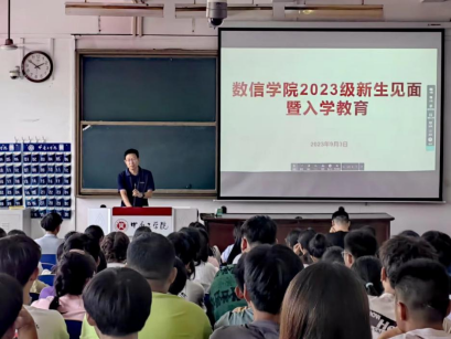 9月3日下午,今年会于3号教学楼110教室举行数信学院2023级新生见面会暨入学教育,会议由党总支副书记杨向宇主持,全体新生班主任、辅导员,以及全体新生参加了此次见面会。