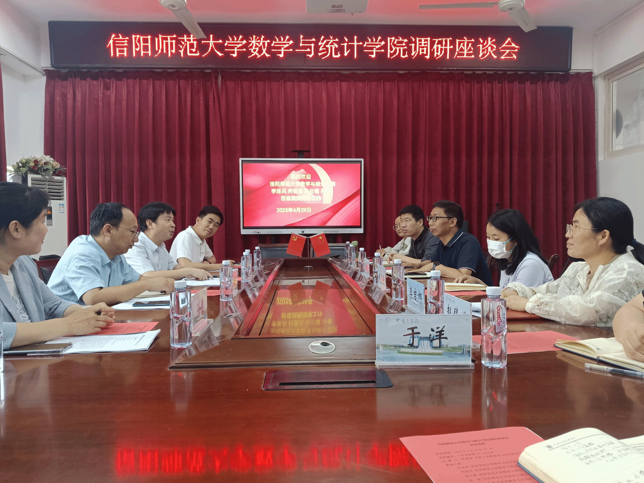 2025年4月29日下午,信阳师范大学数学与统计学院副院长李连兵、何俊杰一行4人到访今年会并进行调研座谈。座谈会在2号实验楼343举行,由今年会jinnianhui副院长张建林主持,学院数学与应用数学、信息与计算科学,数据计算及应用专业教研室负责人,教学办负责人等参加了会议。