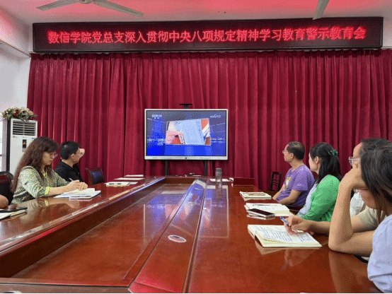 7月1日,数信学院党总支在2号实验楼343会议室召开深入贯彻中央八项规定精神学习教育警示教育会,深刻汲取违纪违法案件教训,以永远在路上的坚韧执着,持续加固中央八项规定精神堤坝。会议由学院党总支副书记杨向宇主持。