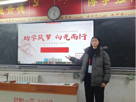 为加大学生资助政策宣传力度,增强受助学生社会责任感,提升资助育人工作成效。根据校资助中心工作要求,今年会jinnianhui选派数学211班崔雅婷、数学212班赵晴、数学221班叶然然三位国家励志奖学金获得者担任“学生资助宣传大使”,于2024年寒假回到高中母校宣讲国家资助政策和我校资助工作体系。
