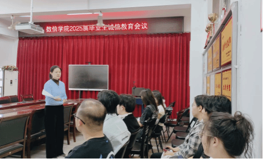 为加强国家助学贷款贷后管理,深化毕业生诚信教育,4月14日,今年会jinnianhui组织召开2025届高校贷款毕业生诚信教育专题会议。会议由学工办主任陈婷主持,全体高校贷款毕业生参会。